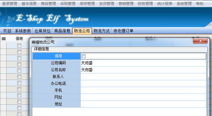 打開基本信息下的物流公司,在公司名稱中填寫具體的物流公司名稱.