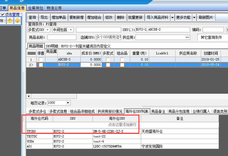 (若商品信息里面的sku和海外倉的sku 是一樣,這一步就不需要設(shè)置) 即產(chǎn)品sku