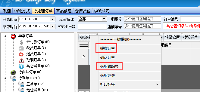 在發(fā)貨管理菜單下的待處理訂單中,